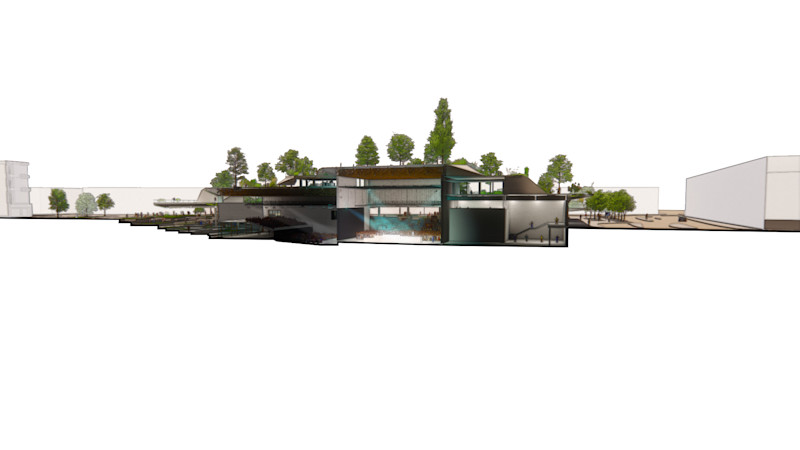 Section cut through gig space, to show the flow from the gardens into the gig.